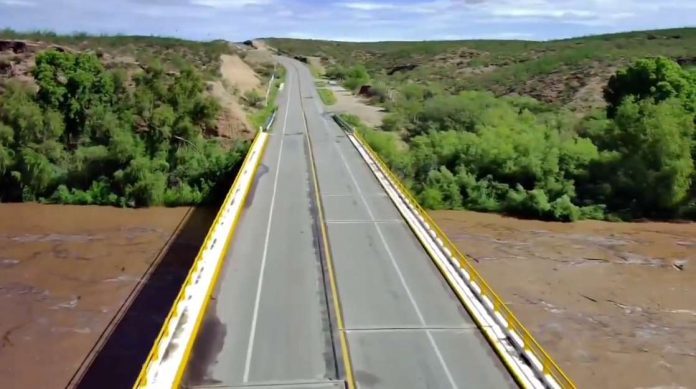 Fue en un video difundido en redes sociales, que se observa desde una vista aérea un puente vehicular donde el agua casi roza la plancha por donde pasan los autos.