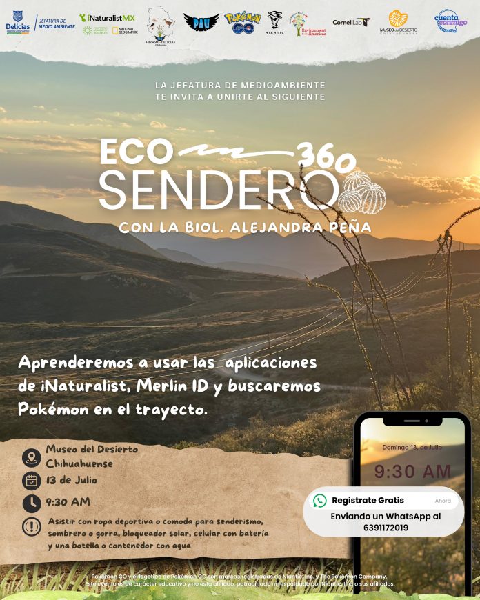 Delicias.- Con el objetivo de fortalecer la educación ambiental y promover el cuidado del ecosistema local, la Jefatura de Medioambiente del Municipio de Delicias, encabezada por Juan Torrecillas, invita a la ciudadanía a participar en el arranque del Ecosendero 360, que se llevará a cabo este domingo 13 de julio a las 9:30 de la mañana en el Museo del Desierto. La actividad está dirigida al público en general y forma parte de una estrategia integral de divulgación científica con enfoque comunitario.