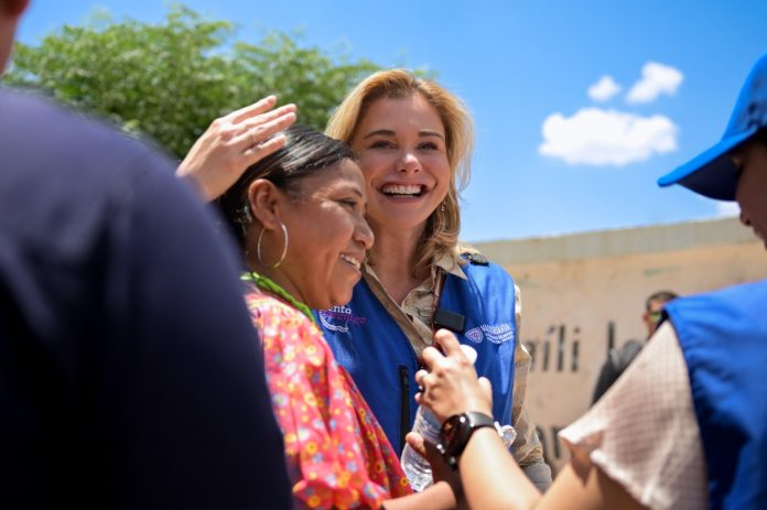 Guiada por la gobernadora de la comunidad, Alicia Reyes, la mandataria recorrió el salón usos múltiples y la capilla, y visitó el hogar de Angélica, niña que padece una condición médica crónica.