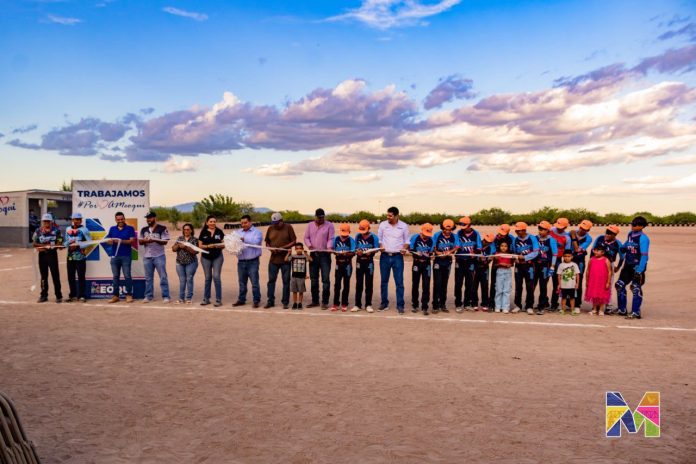 Meoqui.- Con una inversión aproximada de 460 mil pesos, el Gobierno Municipal de Meoqui en conjunto con el Comité Pro Obras y el seccional de Guadalupe Victoria realizaron la entrega de la Rehabilitación del Parque de Beibol de la comunidad de Potrero del Llano, una de las más alejadas de la cabecera municipal, cumpliendo así el compromiso de la alcaldesa Miriam Soto de llegar a cada rincón del municipio con obra pública.