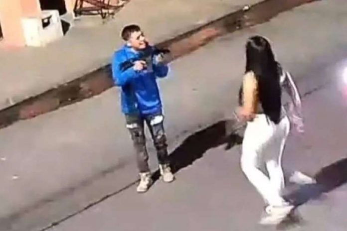 Durante la discusión, el hombre entra al coche y sale con un fusil, con el cual apunta a la mujer y luego le dispara a quemarropa.