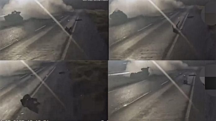 Chihuahua.- Un video de un tráiler muestra el momento exacto de la fuerte volcadura que se registró en la carretera a Delicias, donde un niño sale proyectado del vehículo y cae en la cinta asfáltica, el operador tuvo que salirse del camino para evitar una tragedia mayor.