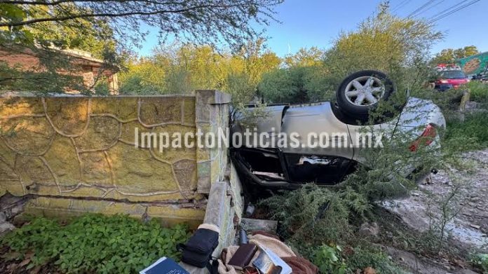 Camargo.- Fuerte volcadura se presentó minutos antes de las 7 de la mañana entre la caseta Fitosanitaria y la Curva del Plátano, al interior del abandonado Motel Baca.