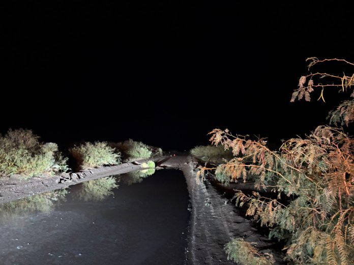 En Ciudad Juárez, una persona fue arrastrada, hubo una inundación, caída de árboles y poste, desbordamiento de un arroyo y un vehículo varado.