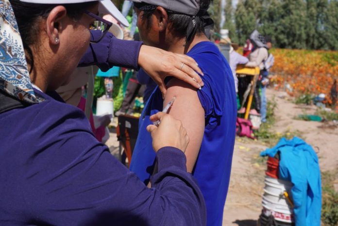Meoqui.- Con el objetivo de inmunizar a la población meoquense y prevenir el aumento de casos de Sarampión, en el municipio de Meoqui, encabezado por la alcaldesa Miriam Soto, se lleva a cabo una vacunación masiva, acudiendo a centros de trabajo de jornaleros agrícolas y realizando un barrido casa por casa en las comunidades de Nuevo San Lucas, Nuevo Loreto y diferentes secciones como la zona Centro, La Aduana y el Albergue de Jornaleros en el seccional de Lázaro Cárdenas, esto por parte de personal de instituciones de salud de los tres niveles de gobierno.