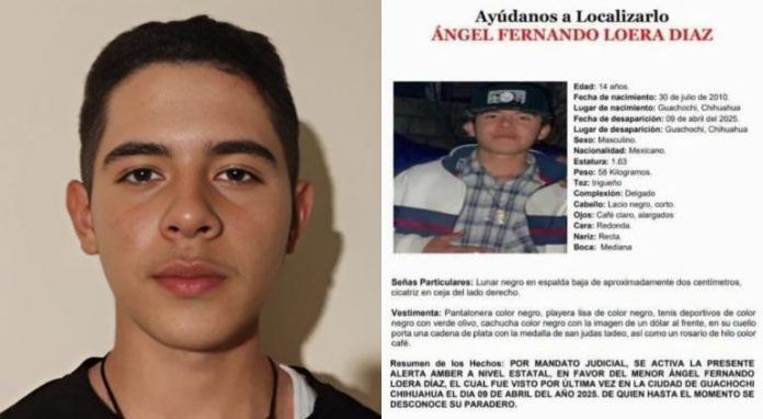 Chihuahua.- La madre de Ángel Fernando Loera Díaz de 15 años quien se encuentra desaparecido desde abril, aseguró que no soporta la angustia de saber que su hijo fue levantado por un grupo armado.