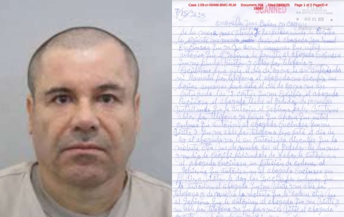 Estados Unidos.- Joaquín Guzmán Loera, El Chapo, ex líder del Cártel de Sinaloa, presentó una carta escrita a mano ante el juez Brian Cogan —de la corte federal de Brooklyn, Nueva York—, en la cual reclama que el gobierno estadunidense le ha impedido contactarse con el abogado Israel José Encinosa, quien recientemente se incorporó a su defensa.