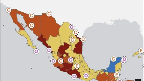 En el caso del nivel 3, donde se pide reconsiderar viajar, se incluyen 8 estados, entre ellos Chihuahua, Baja California, Chiapas, Coahuila, Guanajuato, Jalisco, Morelos y Sonora.