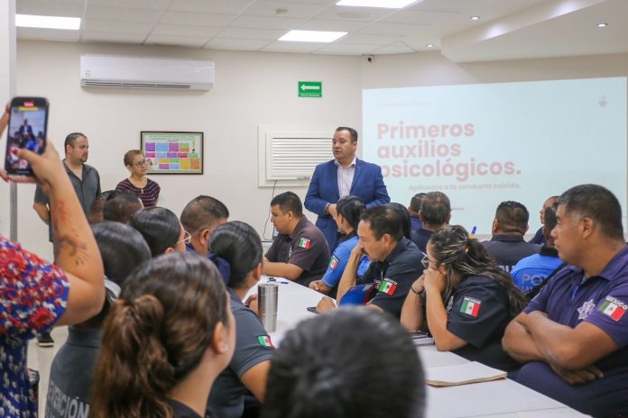Delicias.- Con la firme convicción de que la salud mental salva vidas, el presidente municipal de Delicias, Jesús Valenciano García, estuvo presente en el inicio del taller de Primeros Auxilios Psicológicos dirigido a elementos de Seguridad Pública Municipal. Ahí reconoció su labor como los primeros en dar la cara ante una crisis y les agradeció el compromiso de cuidar, no solo la seguridad, sino también la vida y la esperanza de las familias de Delicias.