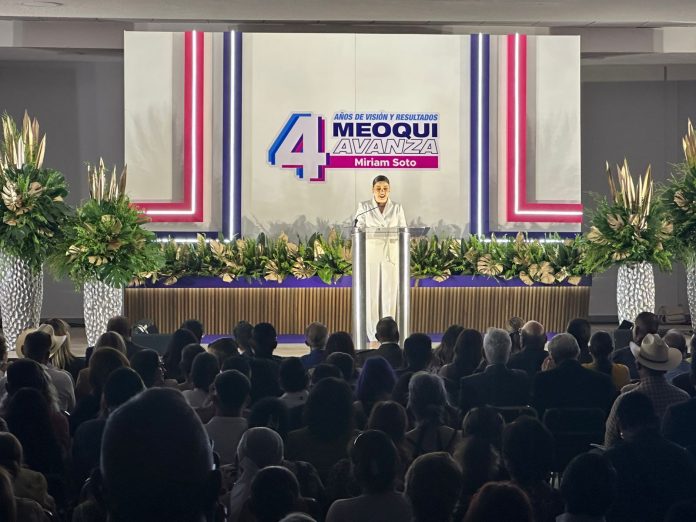 MEOQUI.- Durante su informe de gobierno, la alcaldesa Miriam Soto destacó los avances en materia de seguridad en el municipio, subrayando que este rubro va más allá de patrullas, cámaras o tecnología, pues el objetivo principal ha sido proteger lo más valioso: las familias meoquenses.