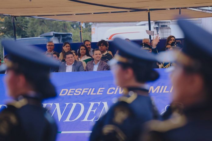 CHIHUAHUA CAPITAL.- El alcalde Marco Bonilla asistió al desfile por el 215 aniversario de la Independencia de México, donde acompañó a la gobernadora Maru Campos a este festejo del 16 de septiembre, para rememorar el inicio de la batalla por la libertad del país con un contingente lleno de corporaciones de seguridad de todos los niveles gubernamentales.