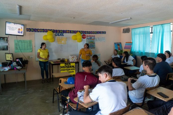 MEOQUI.- En el marco del Día Internacional de la Prevención del Suicidio, el Gobierno Municipal de Meoqui, mediante la Instancia de Atención a la Mujer llevó a cabo un taller en el Telebachillerato José Fuentes Mares, en la comunidad de Guadalupe Victoria, con la finalidad de crear conciencia sobre la importancia de la salud mental.
