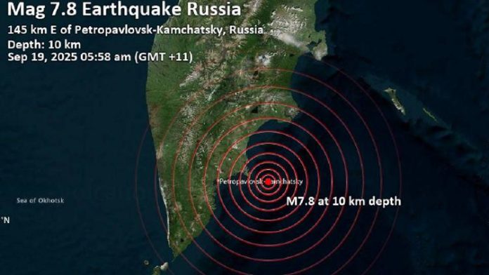 RUSIA.- Esta tarde, se dio a conocer que un sismo de 7.8 sacudió la península de Kamchatka en el Lejano Oriente de Rusia, lo cuál tuvo epicentro a 145 kilómetros al este de Petropvlovsk-Kamchatsky y a una profundidad de 10 kilómetros.