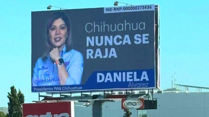 Espectaculares de Daniela Álvarez, presidenta del PAN Estatal, aparecieron en la ciudad de Chihuahua, poco después de que fuera “destapada” para la Galopada por la candidatura a gobernadora.