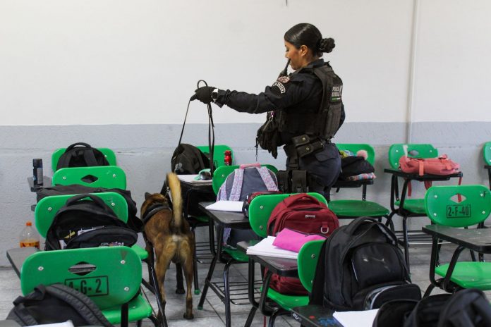 Con el objetivo de prevenir conductas de riesgo, promover entornos escolares seguros y fortalecer la confianza entre comunidad estudiantil y autoridades, la Dirección de Seguridad Pública Municipal de Delicias, a través del Departamento de Prevención Delictiva, implementó el Protocolo de Estrategia de Intervención para la Prevención de la Comunidad Escolar en el Centro de Bachillerato Tecnológico Agropecuario (CBTa) No. 2, donde participaron más de 800 alumnos distribuidos en 25 grupos de distintos grados.