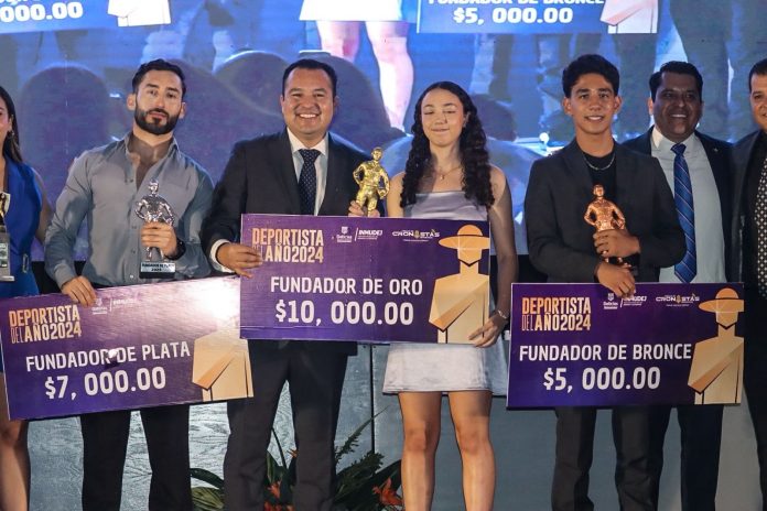 “Entre ellos, hoy reconocemos a Jesús Alfredo Pérez Olivas, de 14 años, campeón mundial de Kick Boxing en Tailandia y ganador del Fundador de Bronce; a Abraham García Méndez, triunfador del Fundador de Plata en Fisicoculturismo Natural tras ganar el Natural Olimpia en Las Vegas; y a Etna Mariana Trejo Juárez, de 14 años, ganadora del Fundador de Oro, campeona mundial del mini básquetbol y seleccionada nacional sub 14”, quienes con su dedicación y logros internacionales llenan de orgullo a todo Delicias, señaló Valenciano García.