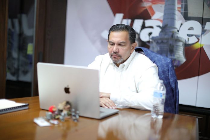 CIUDAD JUÁREZ.- Como parte de las acciones para trabajar en los proyectos culturales del próximo 2026, este día el Presidente Cruz Pérez Cuéllar tuvo una reunión, vía la plataforma digital Zoom, con la secretaria de Cultura de Gobierno del Estado, Rebeca Alejandra Enríquez Gutiérrez.