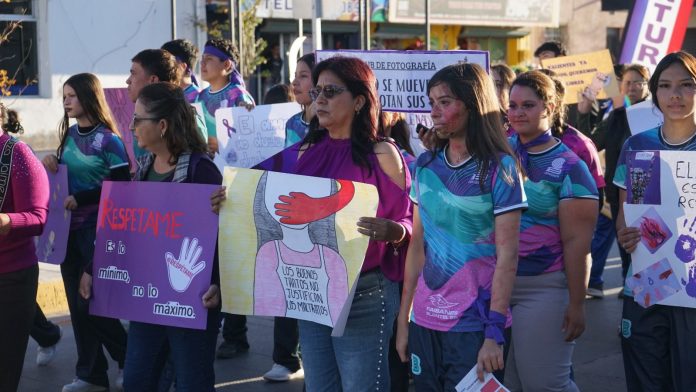 MEOQUI.- Con la participación de más de 100 personas de distintas instituciones educativas, asociaciones civiles y ciudadanía en general, el Gobierno Municipal de Meoqui llevó a cabo la marcha conmemorativa por el Día Internacional de la Eliminación de la Violencia contra la Mujer, donde también se realizaron diferentes presentaciones artísticas, así como charlas y ferias de servicios.