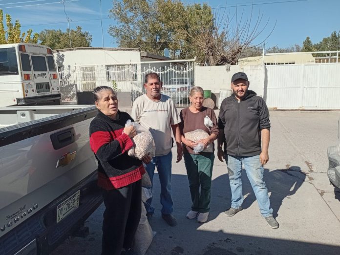 Eddy Talamantes, regidor del Ayuntamiento, informó que la entrega inició en Nuevo San Lucas, continuó en La Chávez, después en La Escuadra y finalmente en Estación Consuelo, beneficiando directamente a las familias con un producto básico a bajo costo.