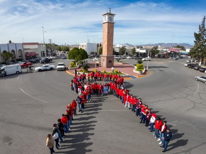 Con el objetivo de fortalecer la conciencia social sobre la prevención del VIH, la Coordinación de Salud de Delicias, encabezada por la doctora Francisca Mercado Ávila, organizó la elaboración de un moño de grandes dimensiones en el círculo del Reloj Público. En la actividad participaron diversas dependencias, instituciones y planteles educativos del municipio.